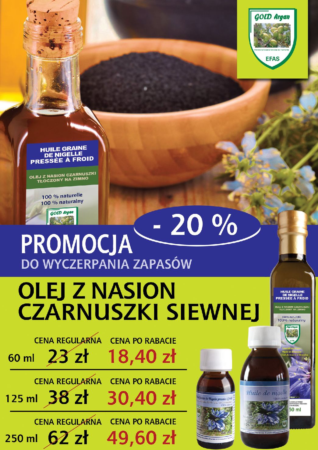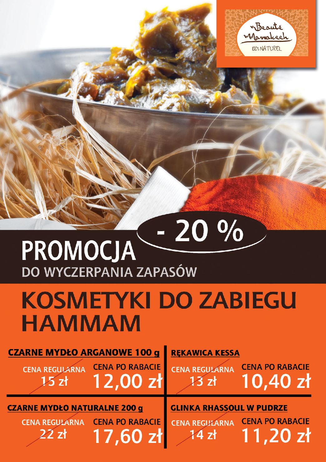 Sklep oferuje także kosmetyki z Maroka na bazie oleju arganowego, jak również czarne mydło naturalne i wiele innych wspaniałych w swej prostocie dóbr z tego pięknego i słonecznego kraju.